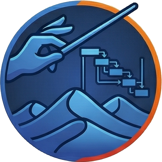Six vertical modules that share the same domain model. No import/export between disparate tools: Canon requirements link to Maestro tasks, which link to Flow Actions, which link to Blueprint items, which link to Vault attributes — all documented in Grimoire.